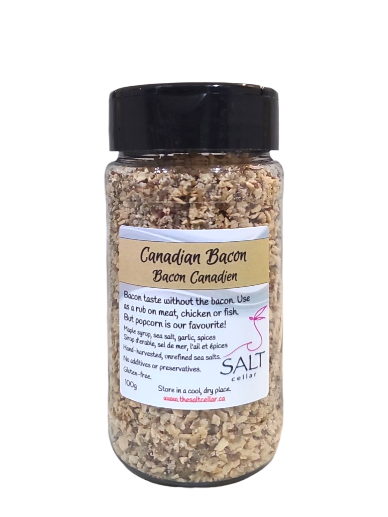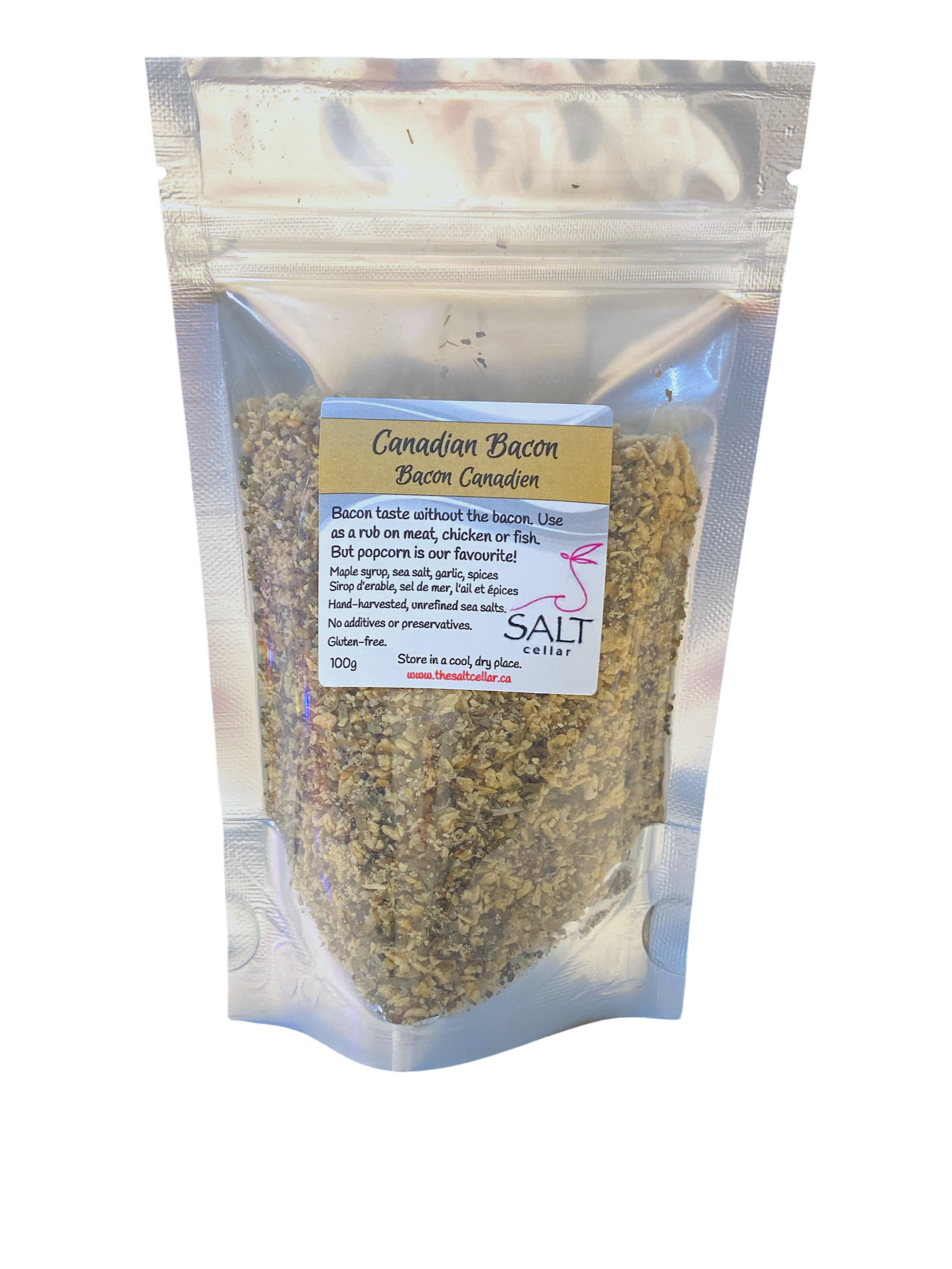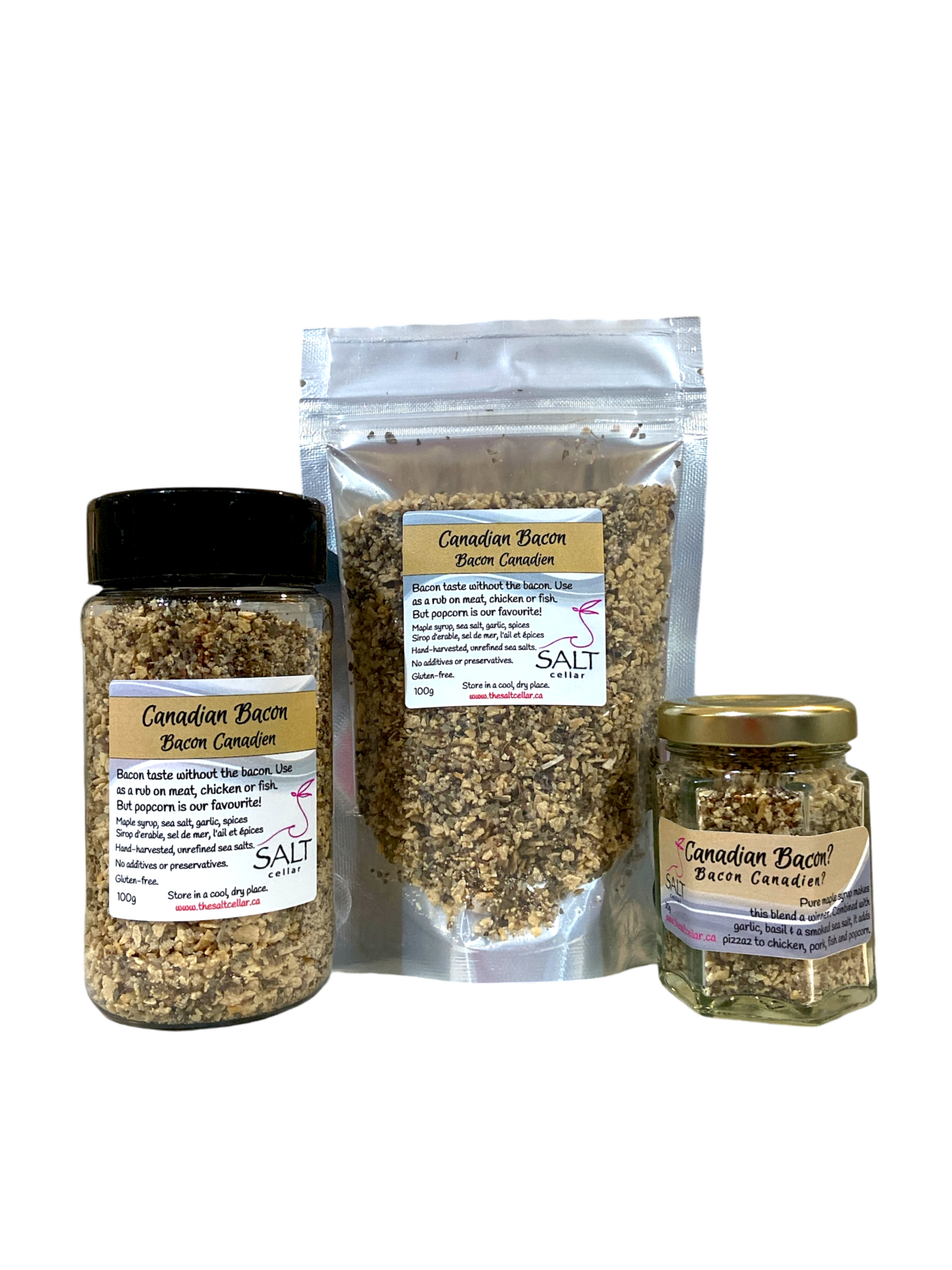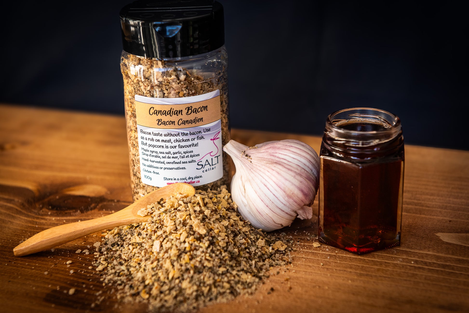 Maple sugar is imported from Quebec to give it that sweet flavour and then we introduce a smoked salt and a few other spices to give you that Sunday morning feeling. Go ahead, have it on your eggs. We like it on Steelhead Trout or Salmon and pork but we love it on popcorn!