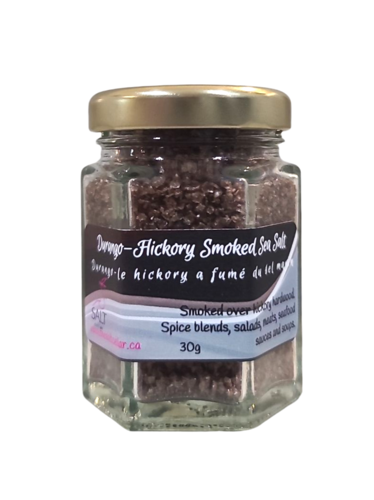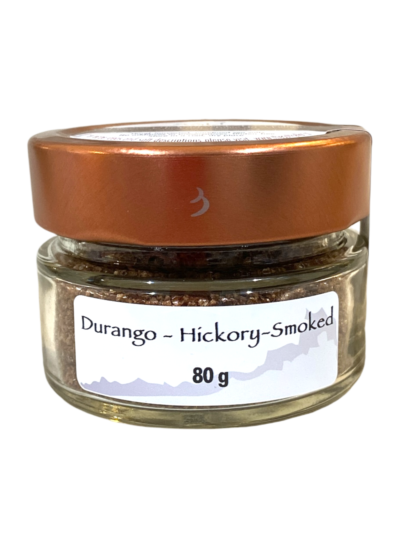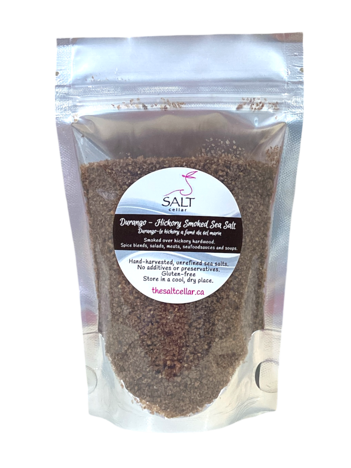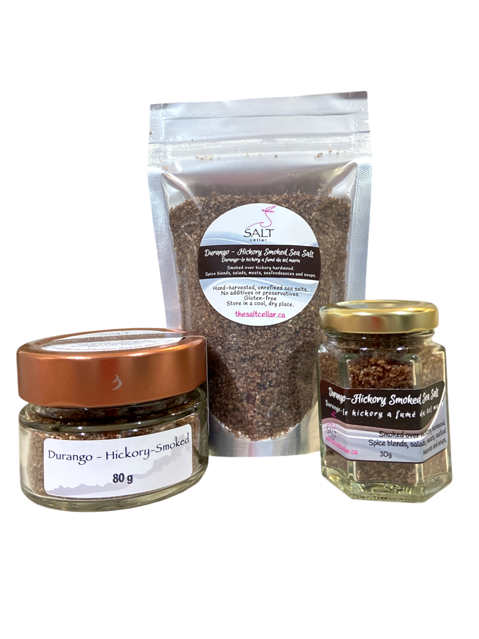 Durango-Hickory Smoked Salt is made by naturally smoking delicate Pacific sea salt flakes with untreated Hickory wood. This process creates a bold, full flavor without any added liquid smoke or artificial flavour.