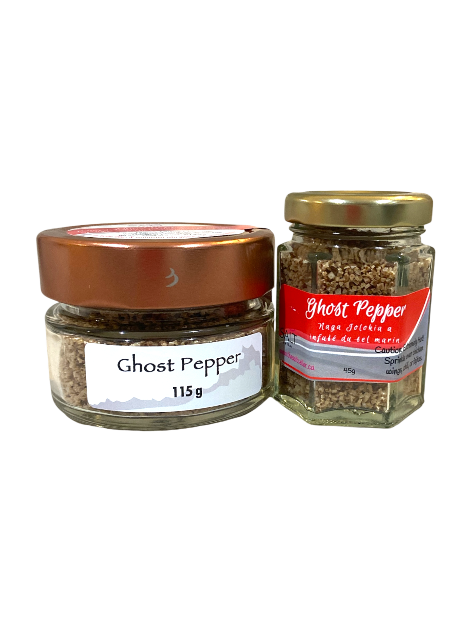 Warning: This is one of the hottest salts in the world. Sea salt and Naga Jolokia peppers create a spice that is out of this world.