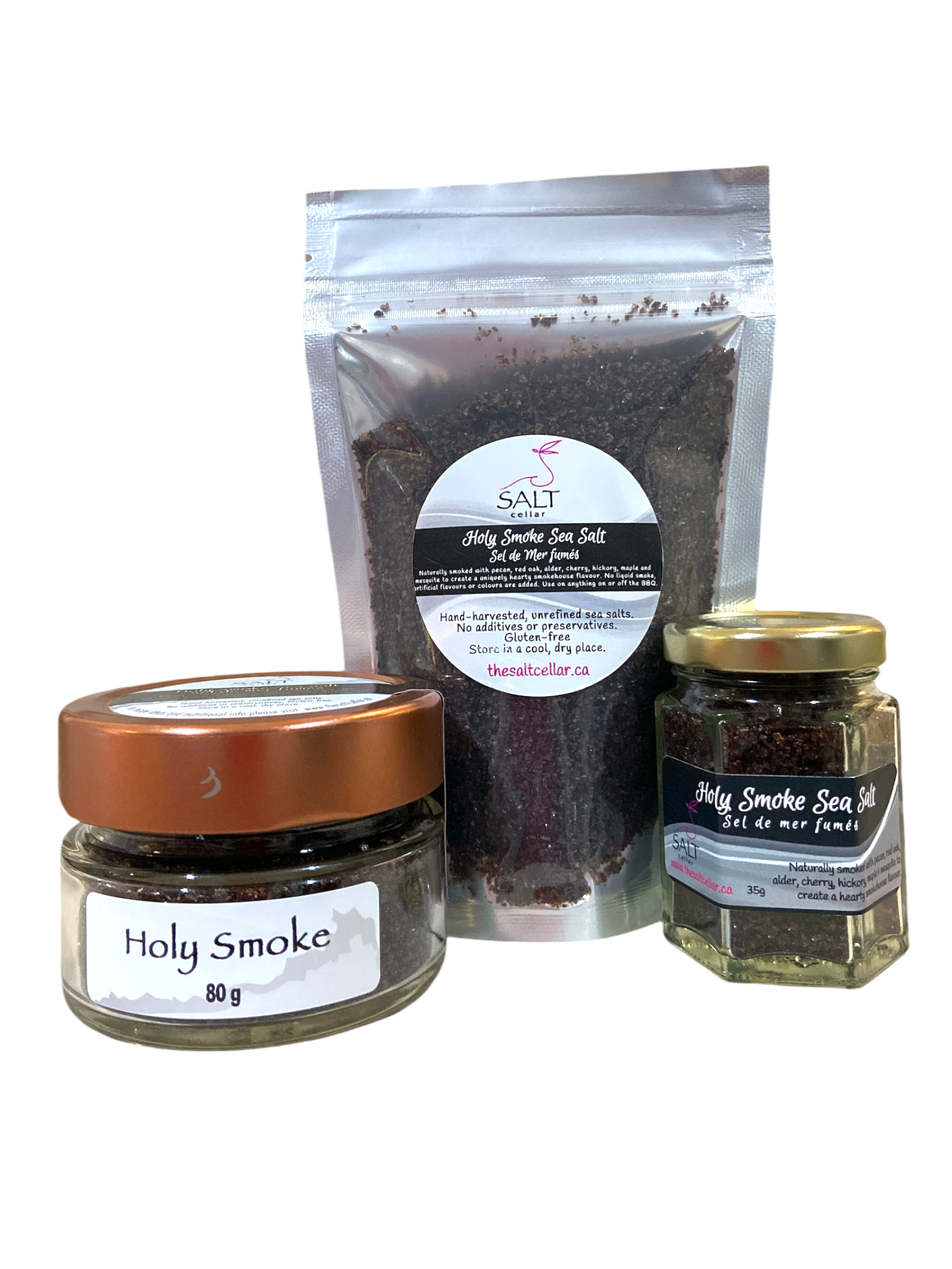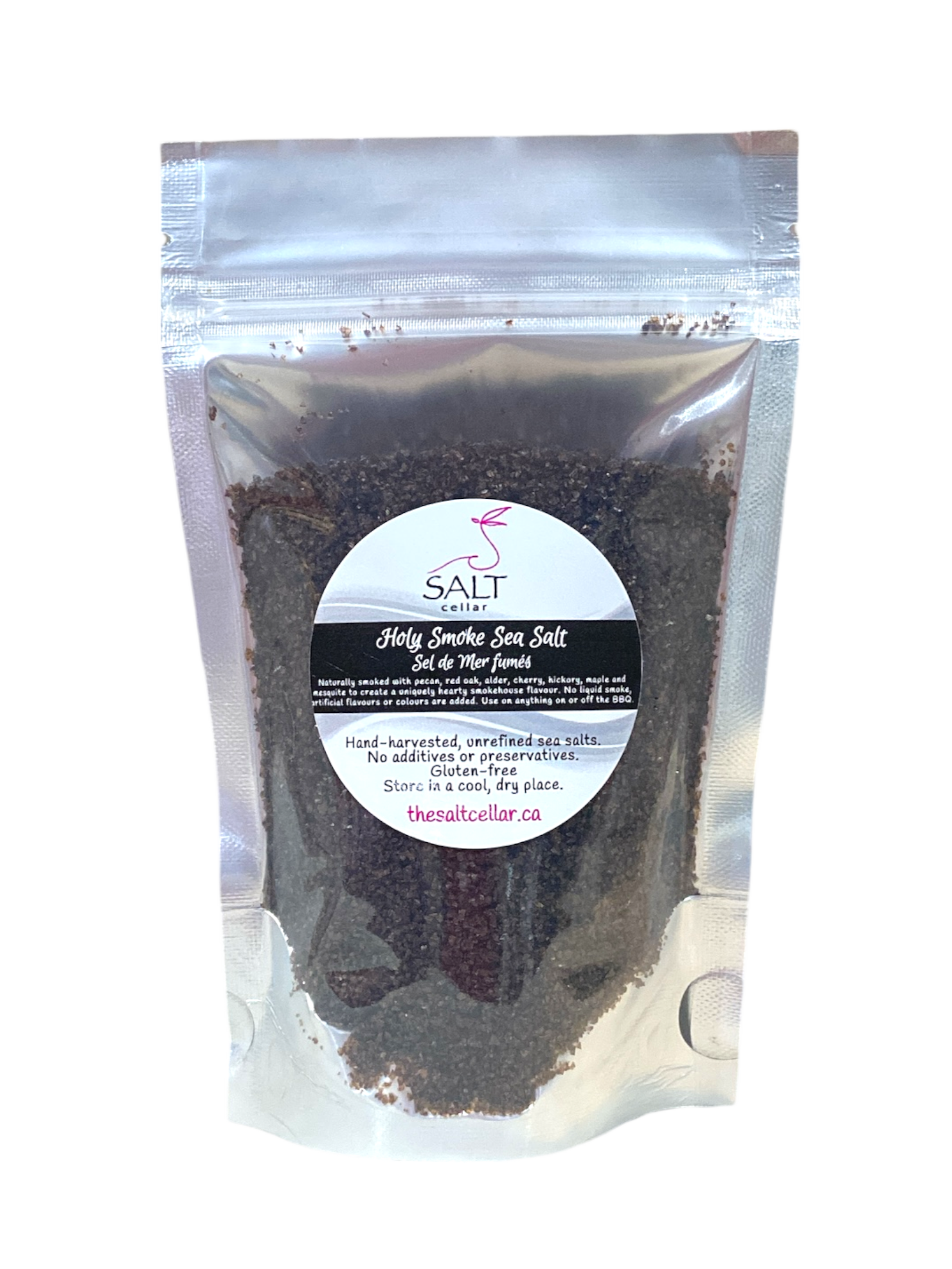 Experience the bold, rich flavor of our Holy Smoke Sea Salt, uniquely crafted through a 14-day cold smoking process with 7 types of wood including Pecan and Mesquite. This smoked salt pairs perfectly with meats and adds a rejuvenating twist to salads, or give your scrambled eggs a unique touch with a sprinkle of this smoked salt.