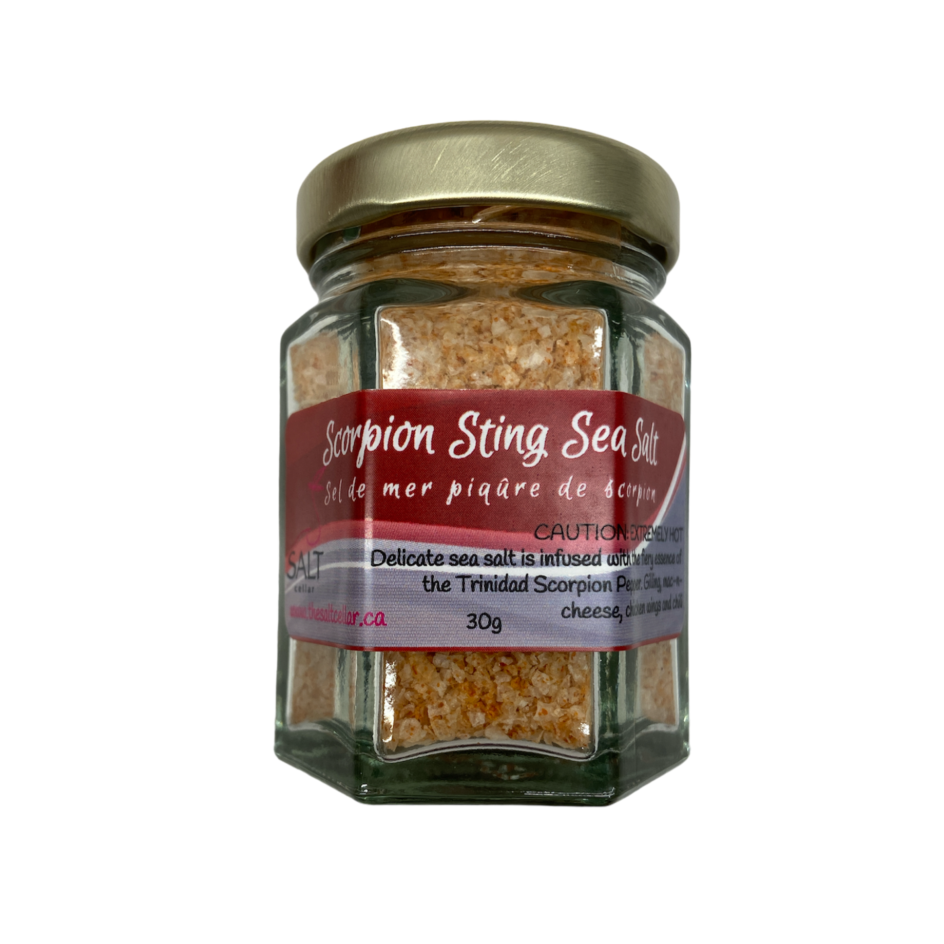 Prepare yourself for an electrifying culinary experience with the legendary Trinidad Scorpion Pepper! Crafted with a devilish touch, this high-end, delicate sea salt is infused with the fiery essence of the Trinidad Scorpion Pepper. Only the boldest dare to try it, as a mere sprinkle is all it takes to ignite a blaze of flavor in your grilling, creamy mac and cheese, or beloved game day chicken wings and chili. Are you ready to spice things up and unleash a world of sizzling sensations?