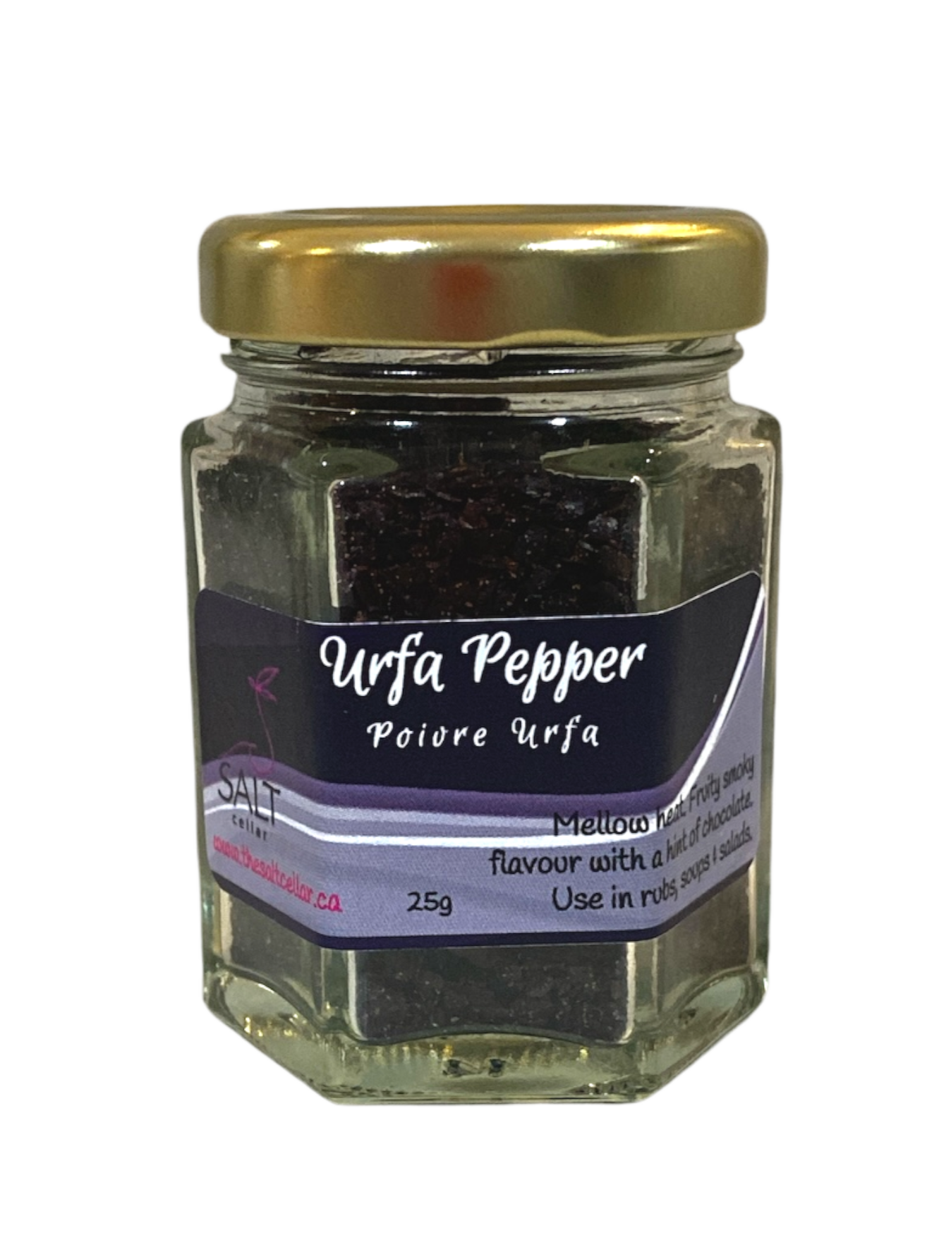 Urfa Pepper, known for its mellow heat and fruity, smoky flavor, originates from Turkey and can be used to add depth and flavor to rubs, sauces, soups, salads, pizza, and pasta.